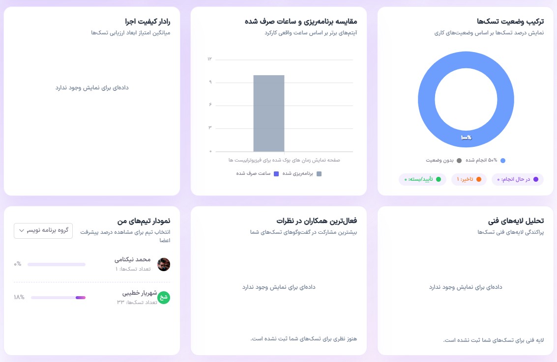 - مانیتورینگ تیم و پروژه
