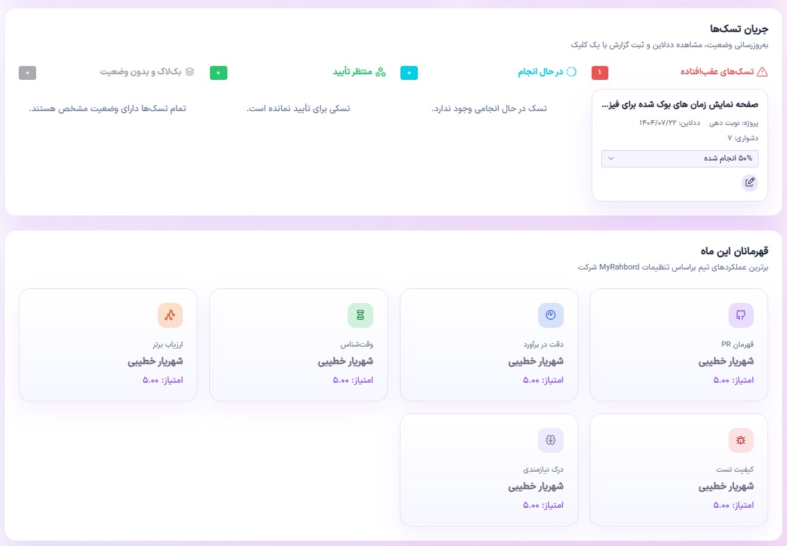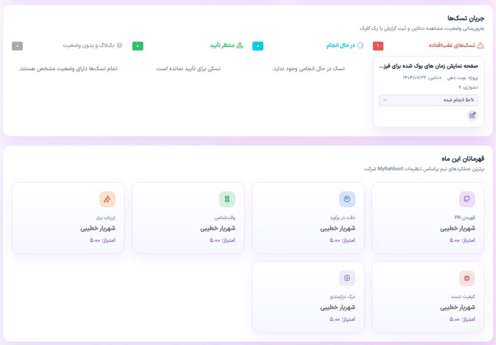 myrahbord، یک تسک منیجر اختصاصی برای سازمانها و تیمهای ایرانیه که علاوه بر امکانات مرسوم مانند تعیین وظایف، زمانبندی، تگگذاری، پیگیری و یادآوری، قابلیت توسعه اختصاصی هم داره. یعنی شما میتونید ساختار ابزار رو دقیقاً بر اساس نیاز تیمتون شخصیسازی کنید، بدون وابستگی به ابزارهای عمومی خارجی.