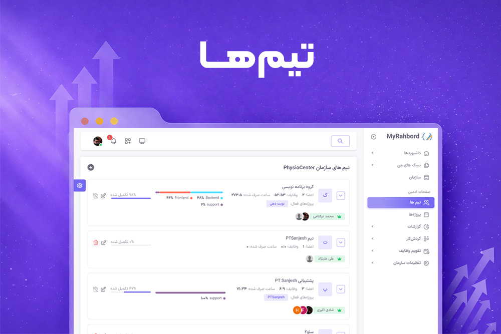 - تیم ها با کلیک بر روی این بخش، میتوانید در پنجره باز شده نمایی از تیمهای سازمان را مشاهده کنید.